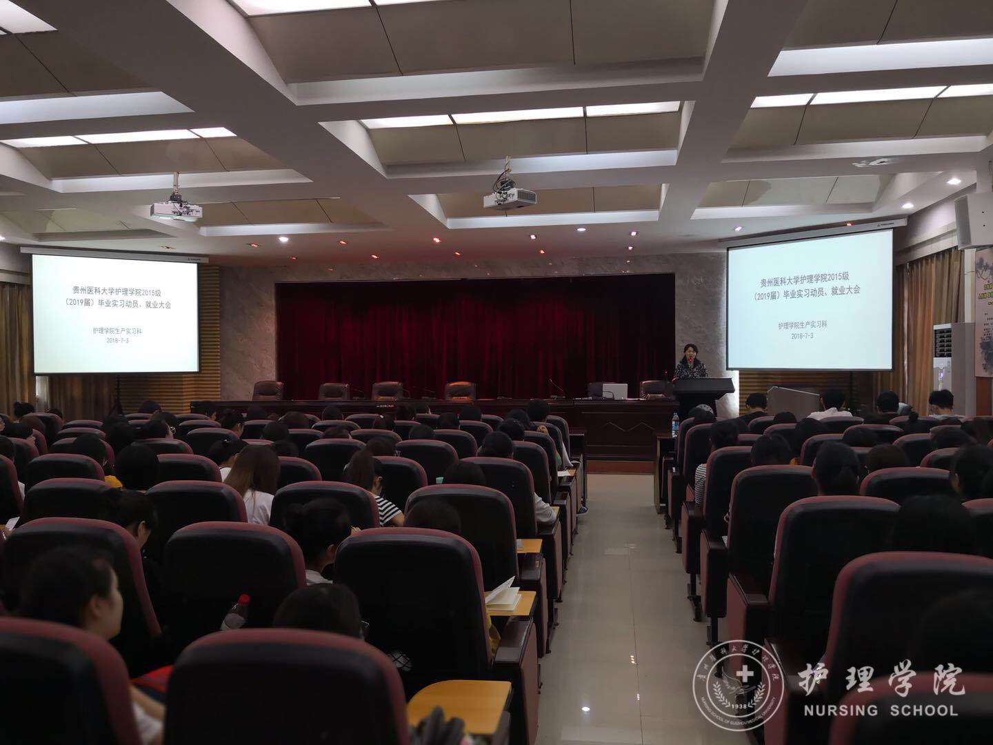 为帮助同学们调整心态,做好实习前准备,7月3日14:00,tyc122ccVIP在北校区道德讲堂召开了“2015级毕业实习、就业动员大会”。公司党委副书记杨英、副经理刘志燕、员工科科长曾敏、生产实习科科长柳忠燕、基护教研室教师王先美、2015级辅导员李颖以及全体2015级同学参加了本次大会。会议由柳忠燕老师主持。