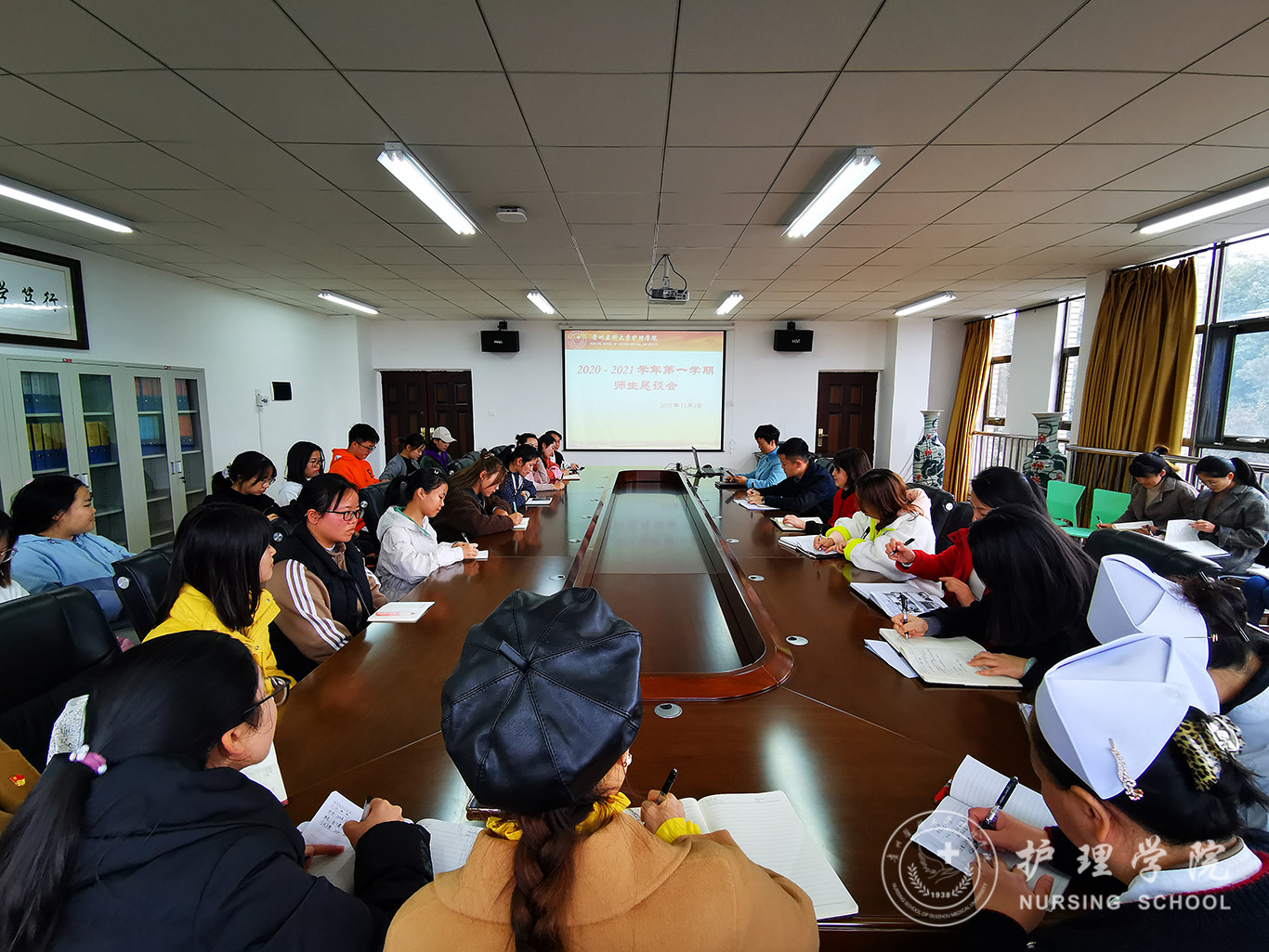 会上,各班同学代表将会前收集的班级中集中反馈的有关教师授课情况、学习中遇到的困惑、难点等问题进行了汇报和建议:部分基础课授课重点不突出,内容掌握难,互动少、调动学习积极性不高。建议专业课多结合临床实例讲授以及对护理职业发展前景的引导等。针对同学们提出的问题在场的相关老师给予了现场解释、指导和答复。并对同学们也提出了学习要求:希望同学们能在今后的学习中学会主动学习、增强评判性思维和临床思维能力。强化基础知识,明确学习目的,在学习方法、学习态度上不断加强和提高。鼓励同学们将教学中遇到的问题要及时反馈和沟通。做到及时发现问题、及时反馈问题、及时解决问题。
