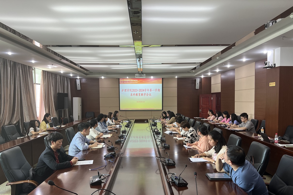 8月31日,tyc122ccVIP在北校区行政楼六楼连廊会议室召开2023-2024学年第一学期本科公司产品工作会议。党委书记杨英、经理李亚玲、副经理刘志燕、副经理王秀红、护理部副主任顾颖、副处级组织员张黎、全体专业教师、全体辅导员、教学科研管理科全体人员、护理部临床护理教学科全体老师参会,教学科研管理科科长卢海霞主持会议。
