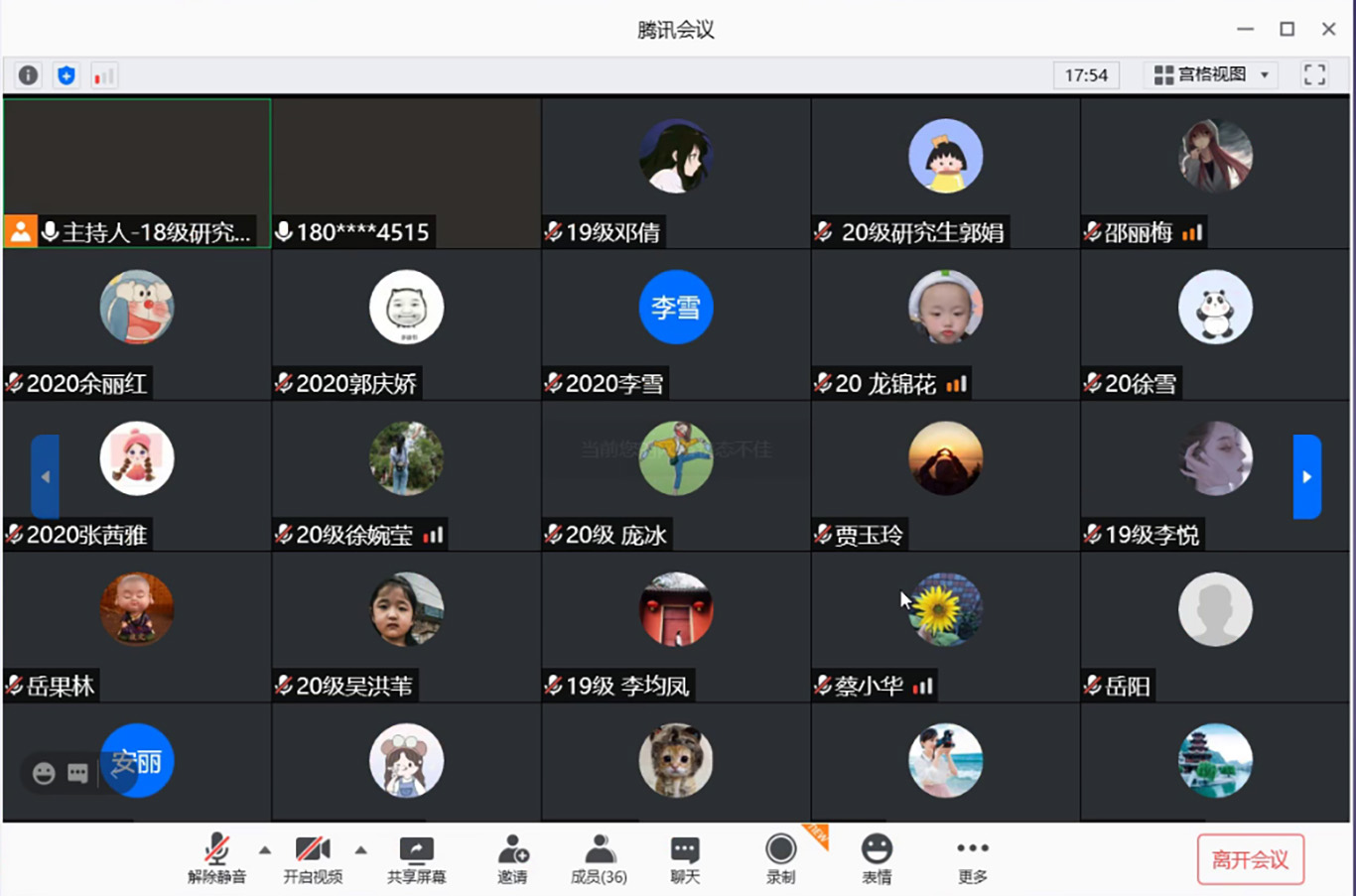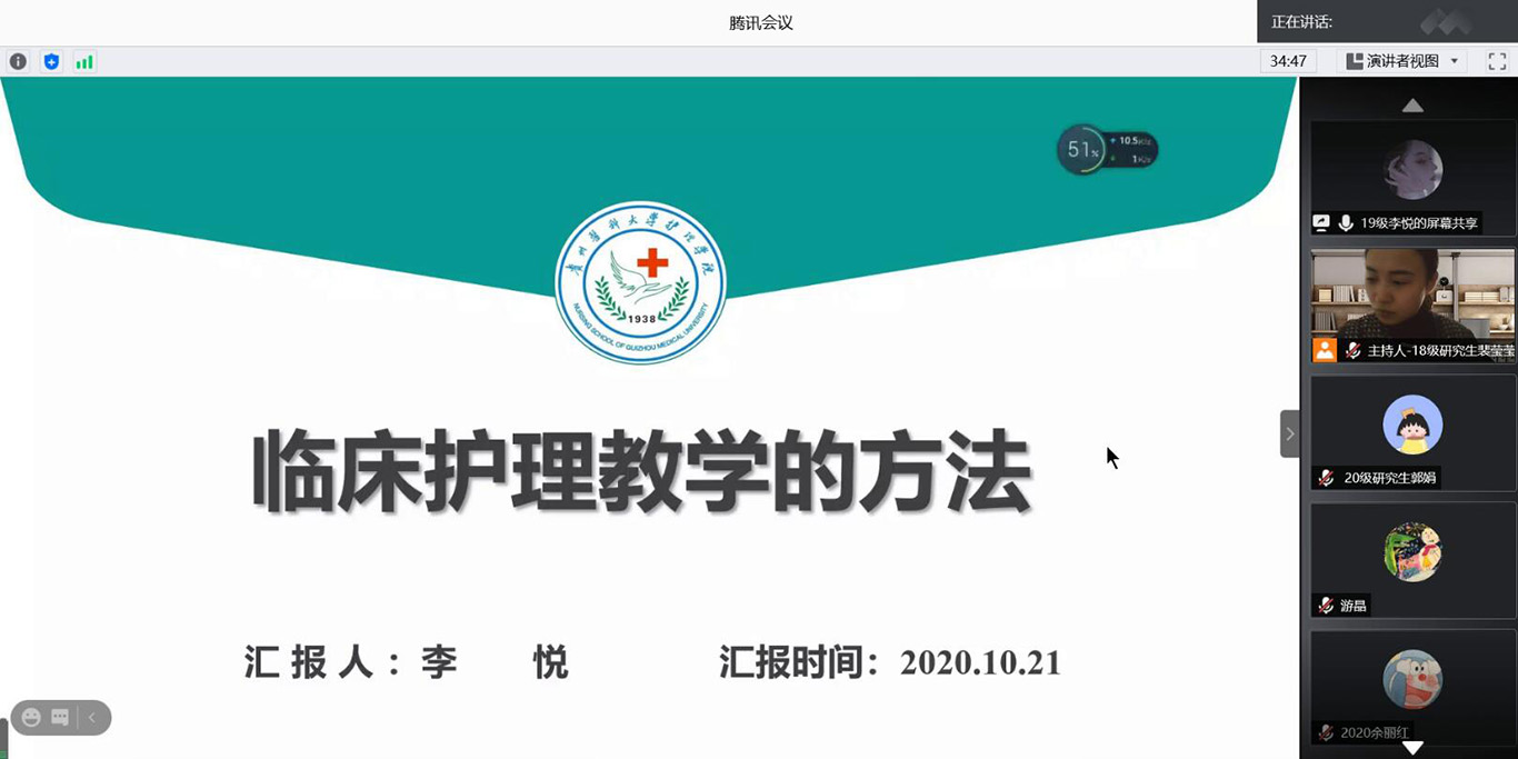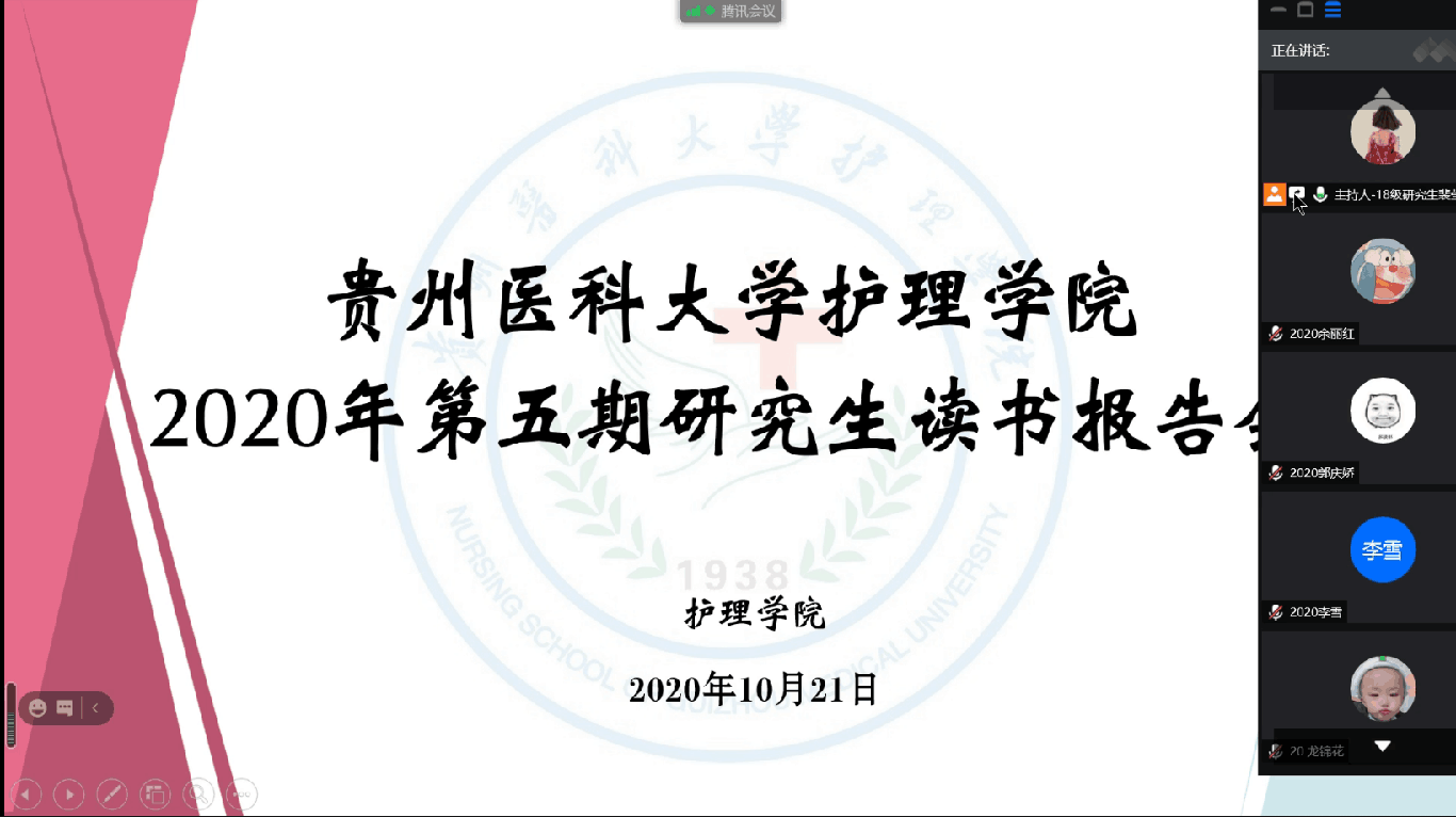 10月21日下午,2020年第五期研究生读书报告会以“云会议”形式进行,tyc122ccVIP研究生导师、专业教师、研究生共计41人参会。