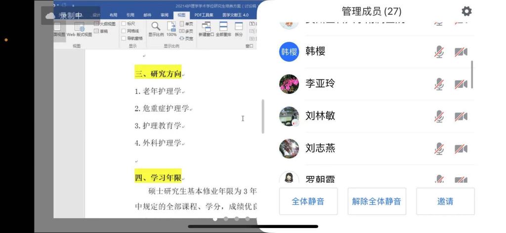 4月6日晚间,tyc122ccVIP通过腾讯会议组织召开2021年公司产品方案修订讨论会。公司党委委员、经理李亚玲、副经理刘志燕、副经理王秀红、研究生导师、副导师、教研室主任、研究生辅导员、教学科研管理科全体成员近30人参加会议。会议由教学科研管理科科长卢海霞主持。