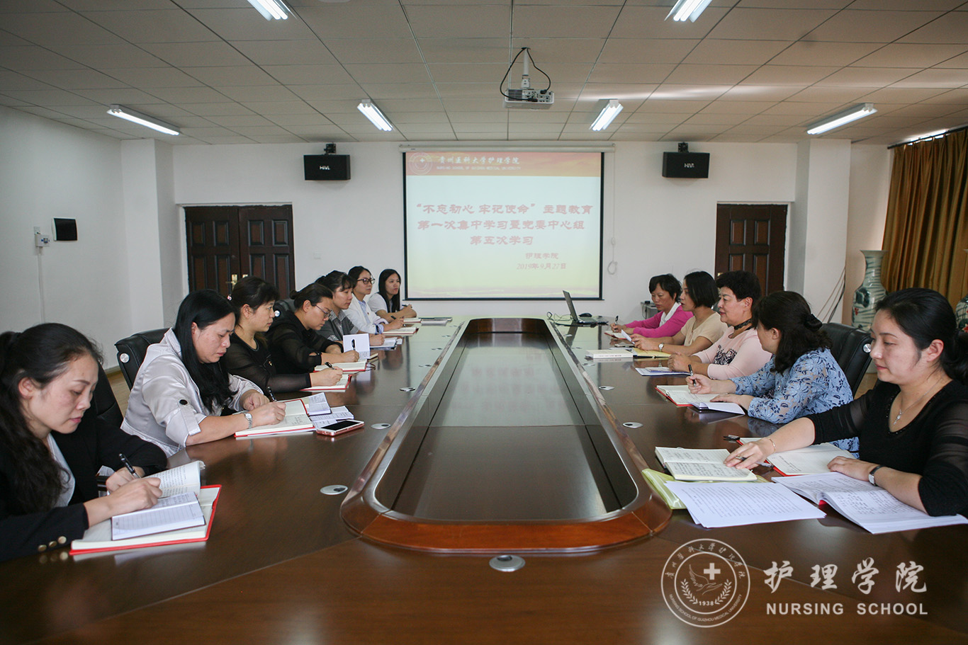 杨英围绕学习内容作了题为《不忘初心、牢记使命——全面从严治党》的中心发言。公司党委副书记王秀红、副经理刘志燕进行了交流发言。组织员曾敏、妇儿科护理教研室副主任刘林敏分别作了学习发言。