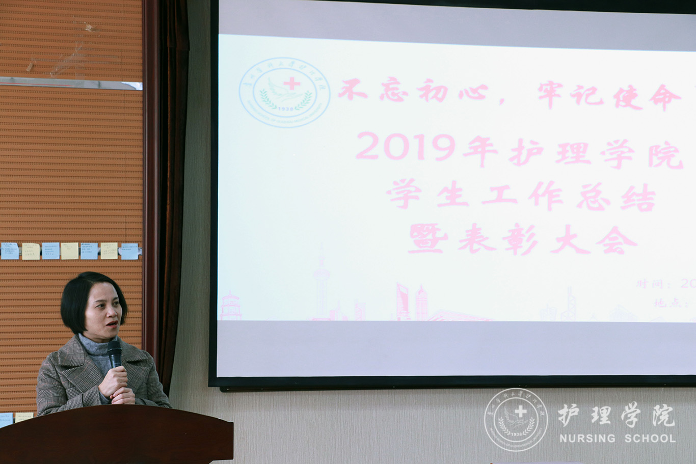 为贯彻落实习近平总书记系列重要讲话精神和党的“不忘初心、牢记使命”主题教育精神要求,全面总结公司2019年度员工工作内容、表彰先进,12月13日中午,tyc122ccVIP在南校区百川楼1101教室隆重召开2019年员工工作总结暨表彰大会。公司党委书记杨英、党委副书记王秀红、正科级组织员曾敏、辅导员及员工会、团学工作办公室、护理技能协会、男护生协会和各班级员工干部代表100余人参加大会。会议由公司团委副书记王晓玲主持。