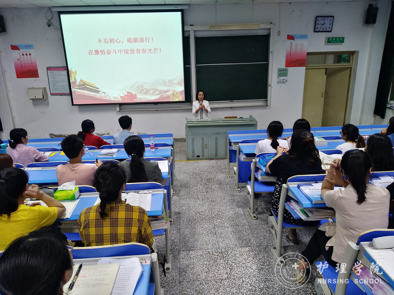 6月12日,公司员工第一、第二党支部在北校区3301教室开展毕业生党员最后一次党课活动,公司党委副书记王秀红为毕业生党员讲授了题为《不忘初心,在激情奋斗中绽放青春光芒》的党课。公司党委书记杨英、员工科科长曾敏及全体本科生、研究生党员参加本次活动,员工第二党支部书记马景瑶主持。