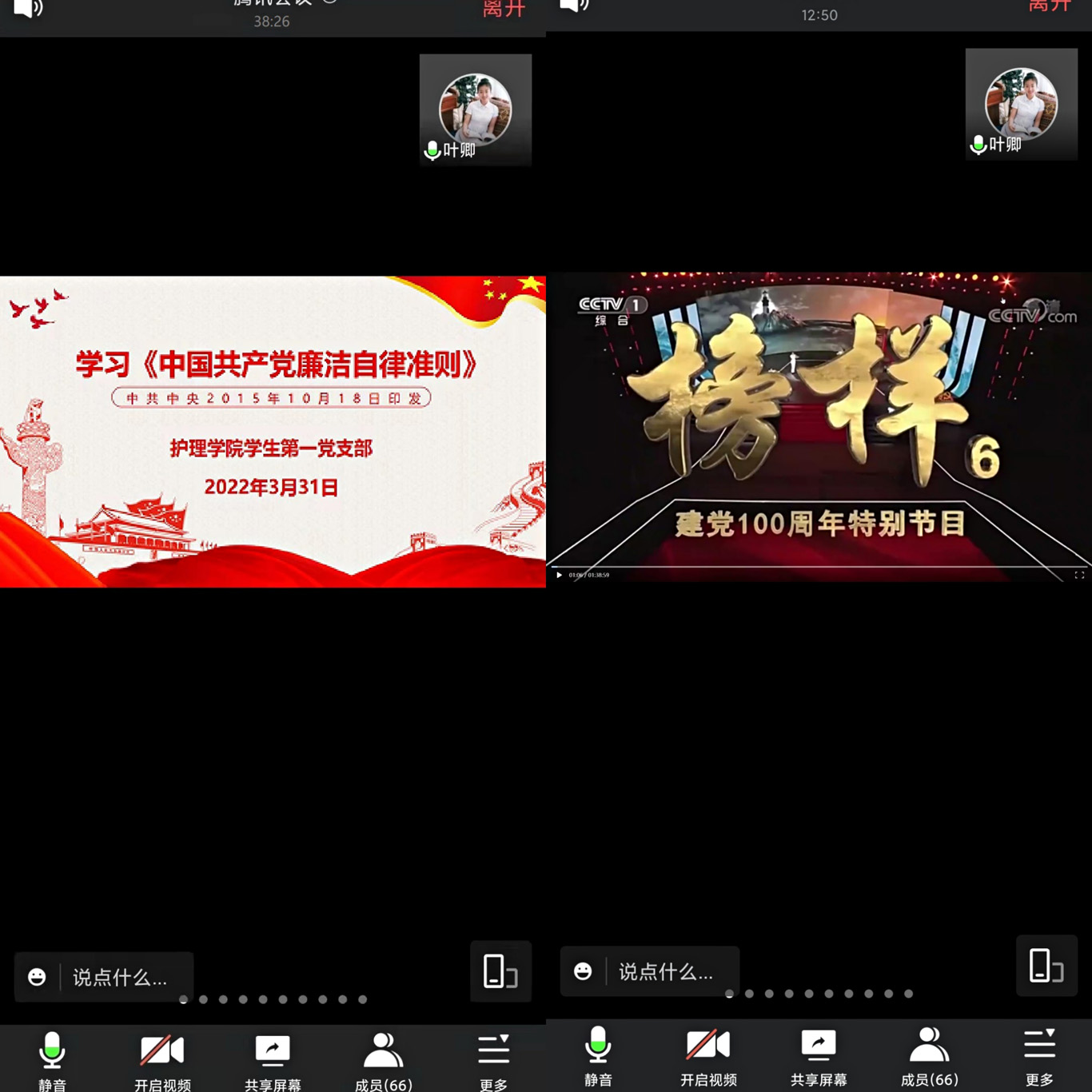 首先,杨叶卿带领全体党员深入学习《准则》,她强调,作为新时代青年党员,要充分认识贯彻实施《准则》的重要性和紧迫性,不断增强廉洁自律的自觉性,使廉洁自律准则内化于心、外化于行,永葆党的先进性和纯洁性,这就是我们要守住的“底线”。随后,杨叶卿组织全体党员集中观看“榜样6”专题片(建党100周年特别节目),通过学习典型事迹进而深化作为中国共产党人坚定信念、践行宗旨、拼搏奉献、廉洁奉公的高尚品质和崇高精神。