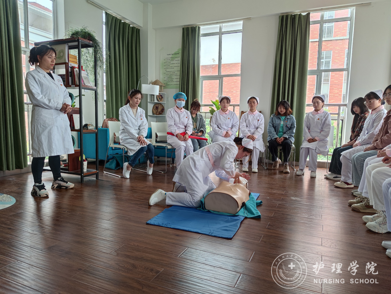 首先,卢海霞、马丽两位专业教师给大家科普了心脏复苏术(CPR)理论知识及应用途径,随后由2020级助产班罗霜同学通过教学模型向大家展示了完整的心脏复苏术(CPR)操作,示教结束后生物与工程公司的同学们也纷纷在老师们的指导下进行CPR操作练习。