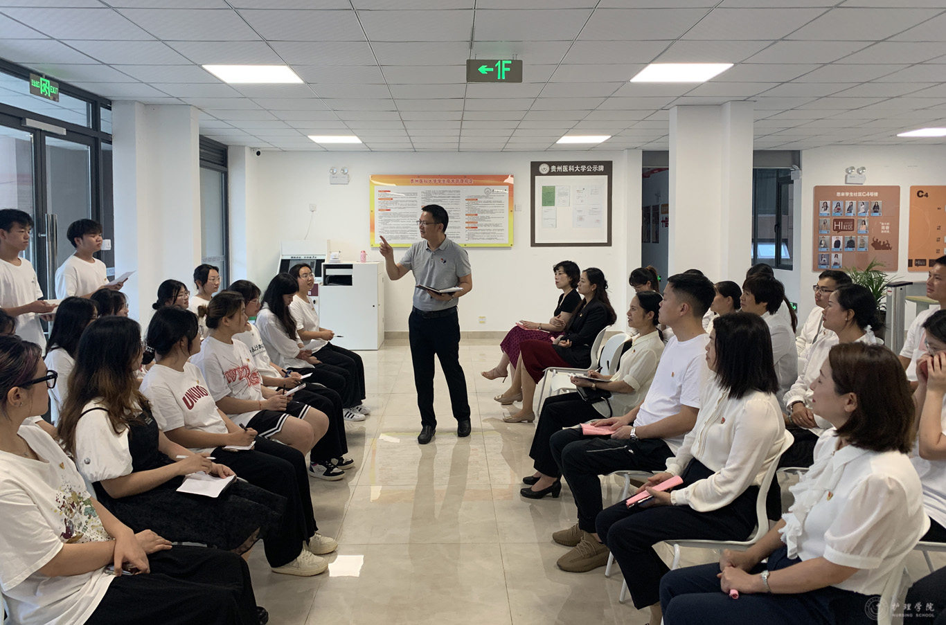 最后,与会教师参观了C4员工社区建设情况,并与员工党员代表在社区开展了师生座谈。座谈中,员工党员代表就专业教学、宿舍文化、生活服务等方面对“一站式”员工社区的建设提出了自己的意见和建议,针对员工提出的相关问题,参会教师进行了细致解答和深入交流。王韬高度肯定了同学们心系社区、积极建言献策的主人翁精神,他表示,党委员工工作部(员工处、武装部)将基于员工发展需求,完善“一站式”员工社区功能设计,不断增强同学们对社区的认同感和归属感,扎实保障“一站式”员工社区建设工作高质量发展。