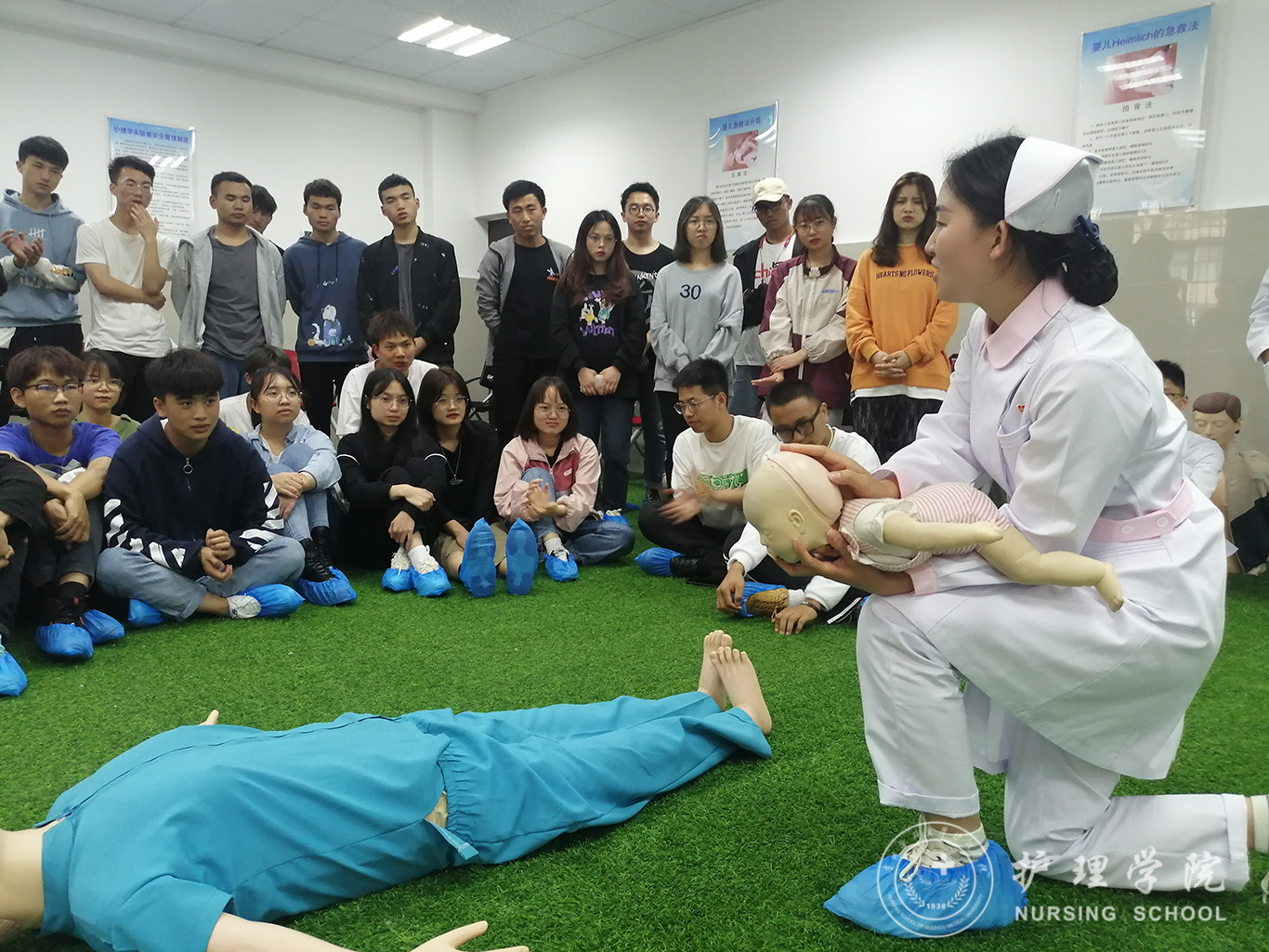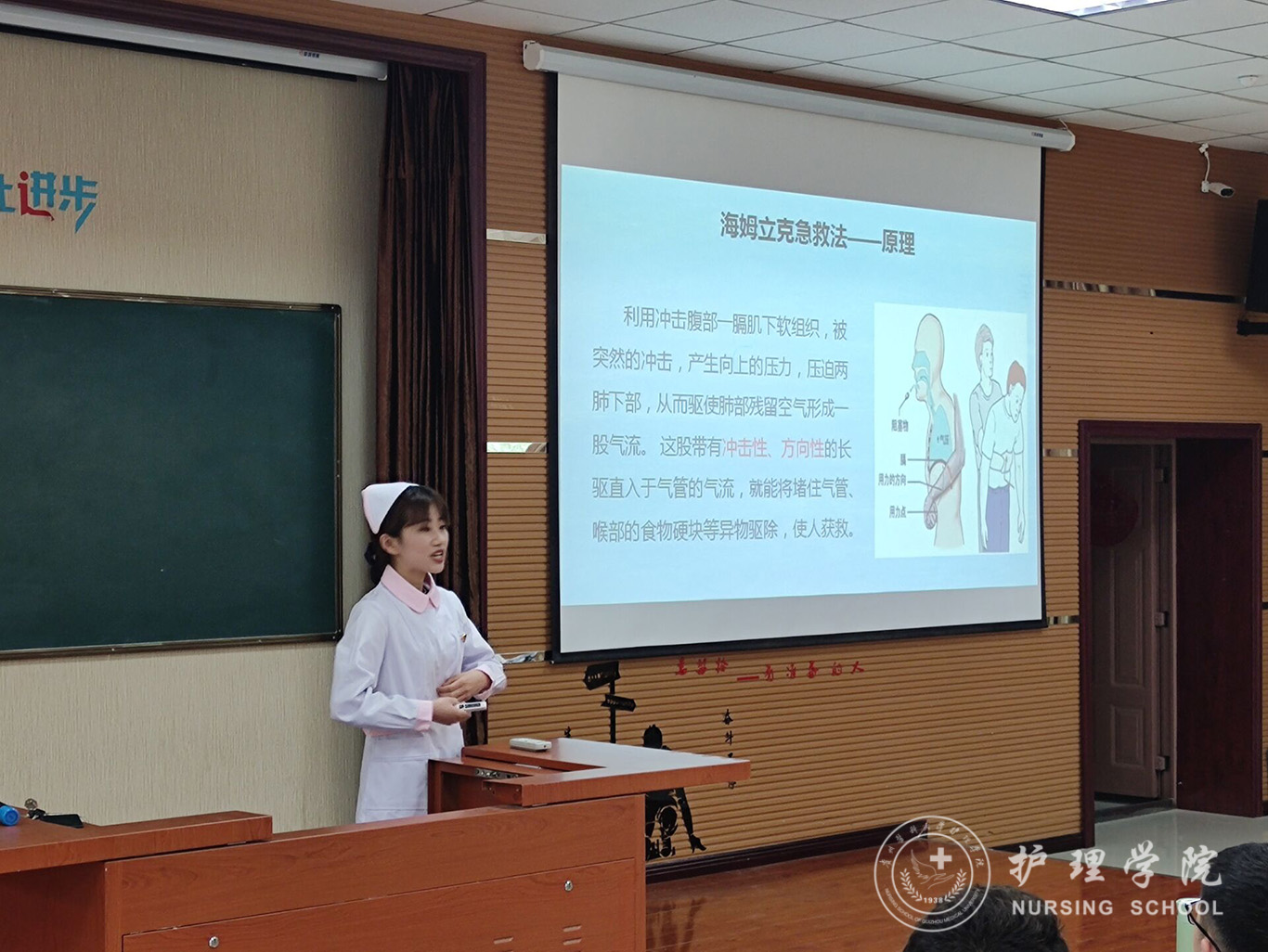 在教室里,两位主讲同志结合临床实际对CPR及海姆立克急救法进行绘声绘色的讲解,呈现给受训员工凝练而又专业的理论知识,在CPR模拟实验室中,主讲同志进行了干脆利落,讲解详实的实操演练,展现了一名护理专业应届毕业生的专业与干练,随后技能协会成员对参训同学进行了详细指导及分组练习。