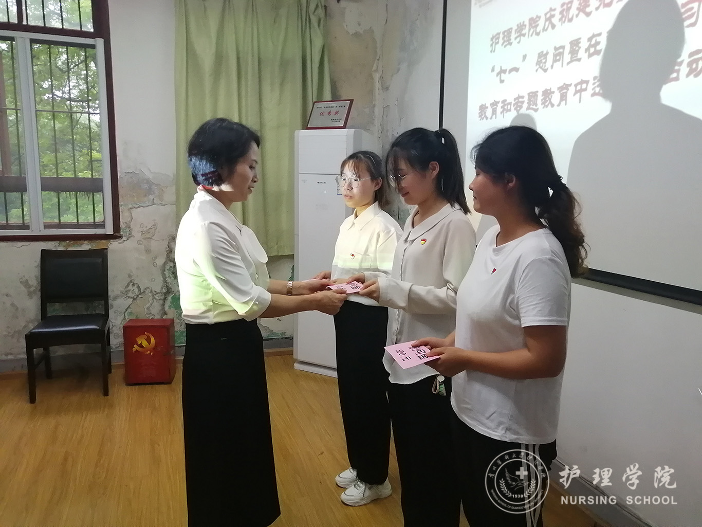 首先,杨英对本次慰问的三名贫困员工党员给予诚心的问候与关怀,详细了解大家的家庭经济状况、学习工作情况,仔细询问了在学习、生活中所遇到的问题和困难,杨英强调并鼓励大家,作为新时代青年,应当坚定信心,乐观向上,树立积极人生态度,勇敢面对困难、解决困难;要志存高远,勤勉好学,勇担青年时代使命;要牢记身份,做好表率,发挥党员先锋模范作用。何为希望三名贫困员工党员可以坚定信心,成为自觉肩负时代使命的新时代青年。张黎引用了习近平在庆祝中国共产党成立100周年大会上对广大党员的号召话语激励大家要进一步加强党的理论学习,提升自己的同时也要起到党员先锋模范作用,带动身边人一起努力。最后,杨英为三位贫困员工党员依次发放慰问金并合影留念。