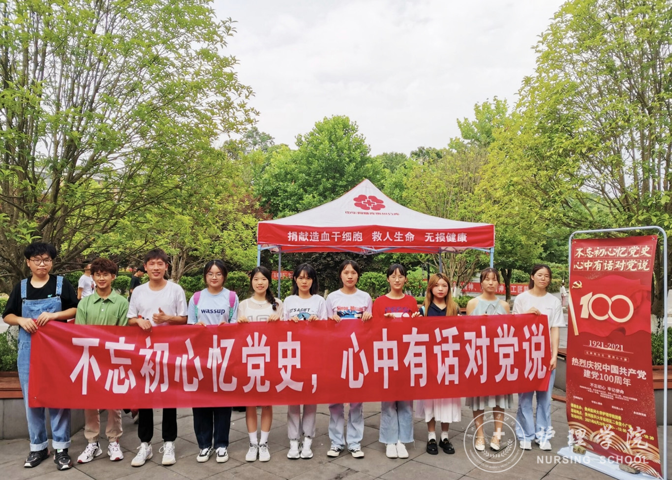 6月29日,在建党百年来临之际,为颂扬中国共产党的丰功伟绩,讴歌红色人物,引导广老员工了解党史,感悟中国共产党百年光辉历程,缅怀革命先烈,激发员工爱党、爱祖国、爱社会主义的社会责任感和使命感。公司于南校区二食堂小广场开展了“不忘初心忆党史、心中有话对党说”主题团日活动。2019级-2020级团员参加了此次活动。