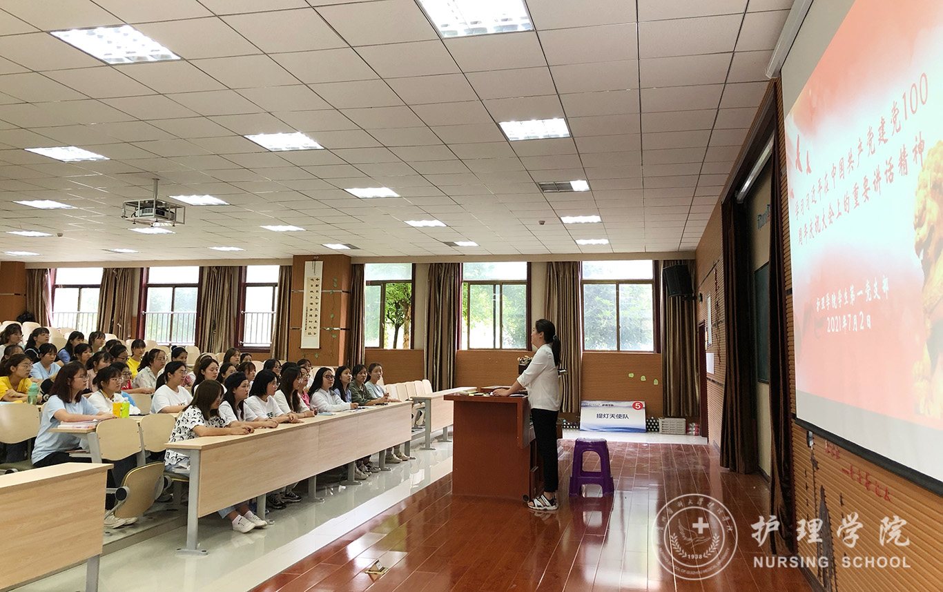 首先,杨叶卿由习近平讲话中的“一个庄严的宣告”展开本次学习。一百年来,为了实现中华民族伟大复兴的历史使命,无论是弱小还是强大,无论是顺境还是逆境,我们党都初心不改、矢志不渝,团结带领人民历经千难万险,付出巨大牺牲,攻克了一个又一个看似不可攻克的难关,创造了一个又一个彪炳史册的人间奇迹。进而,杨叶卿结合自己的身边故事,生动阐释党对人民的贡献之大。并强调作为新时代青年应当牢记“坚持真理、坚守理想,践行初心、担当使命,不怕牺牲、英勇斗争,对党忠诚、不负人民”的伟大建党精神。