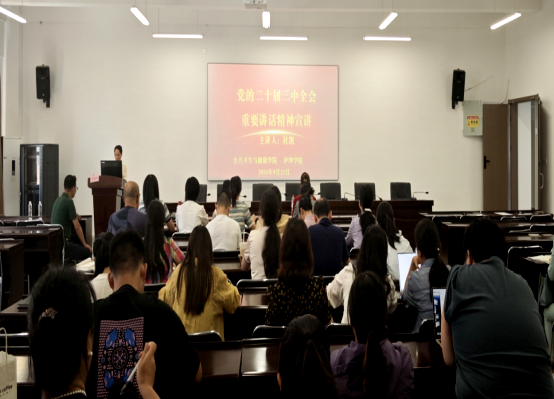 9月23日,为深入学习宣传贯彻党的二十届三中全会精神,深学笃行习近平总书记关于全面深化改革的一系列新思想、新观点、新论断,公司党委联合公共卫生与健康公司党委邀请马克思主义公司党委书记杜凯教授开展党的二十届三中全会精神专题宣讲,会议由公司党委书记杨英主持,两公司领导班子成员、教职工参加。